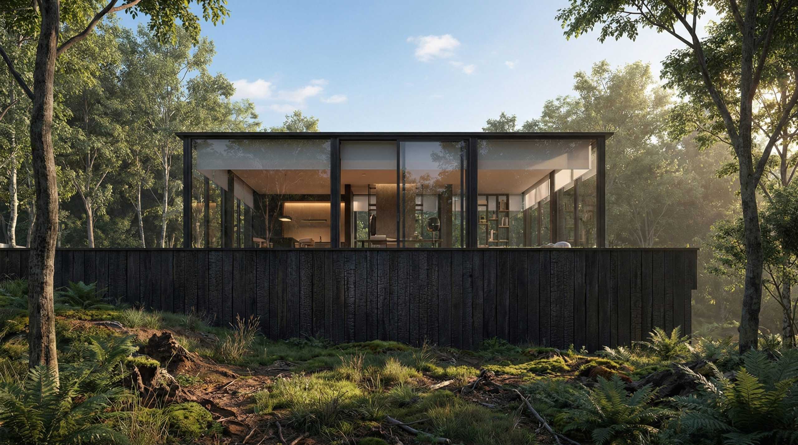 Kuća namijenjena jednoporodičnom stanovanju, koju su zajednički projektovali arhitekta i klijent, koncipirana je sa namjerom da korisnicima pruži sekluziju, mir i privatnost, podstičući jedinstven životni stil. Priroda, univerzalni izvor inspiracije, vodila je proces projektovanja. Integracija objekta u okolnu sredinu je dovedena do krajnjih granica. Smješten na najudaljenijoj tački parcele od glavnog puta, bez drugih objekata u blizini, projektom je predviđena minimalna intervencija u okviru postojeće šume. Pristup objektu je omogućen preko dovoljno široke staze koja omogućava saobraćanje vozila jednom trakom. Pažljivo razmatranje namjene objekta, klime, geografije podneblja i željenog arhitektonskog izraza, rezultiralo je objektom jednostavnog oblika, koji je projektovan sa namjerom da se neosjetno uklopi u svoje okruženje, doimajući se gotovo nevidljivim, dok istovremeno izaziva osjećaj ugodnog iznenađenja, pri čemu okolna priroda i dalje zauzima centralno mjesto.